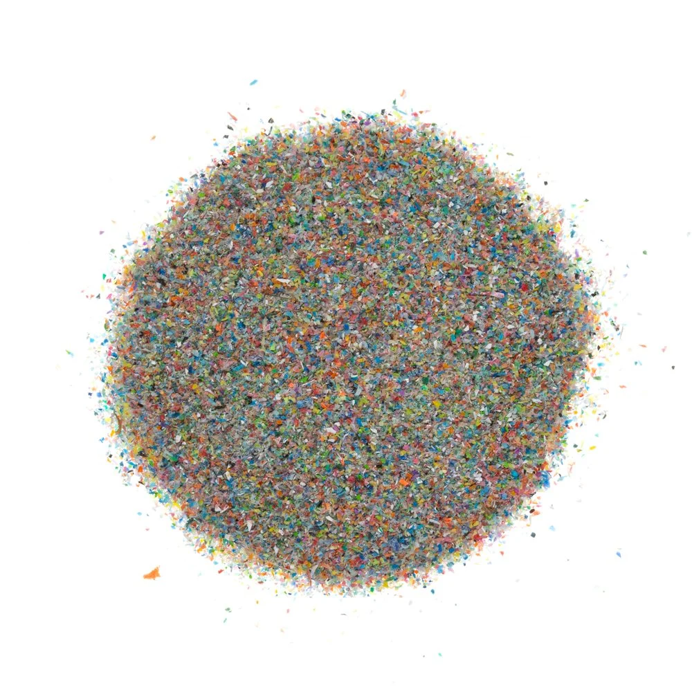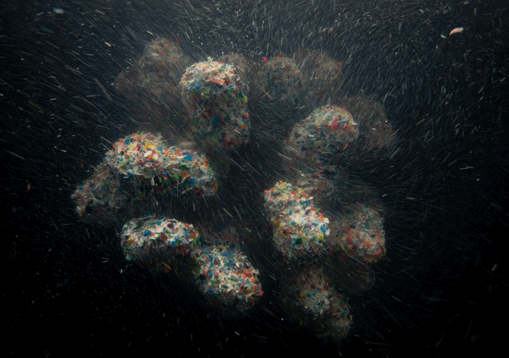 My work always starts with gleaning plastic detritus from the beaches of Sydney. I collect and curate the tangible, colourful remnants of our consumptive habits as an act of artistic intervention. An object becomes waste when it has been discarded, forgotten or displaced. My work attempts to intercept the ontology of each piece of plastic. The first flash of my camera freezes the objects I find in photographic form. I then work to blend and grind the plastic into dust with my kitchen blender. The second and third flash captures the in-between state of plastic-to-dust. The final flash captures this new collection of greying dust, pulsed into a thin layer of forgotten consumer dreams.